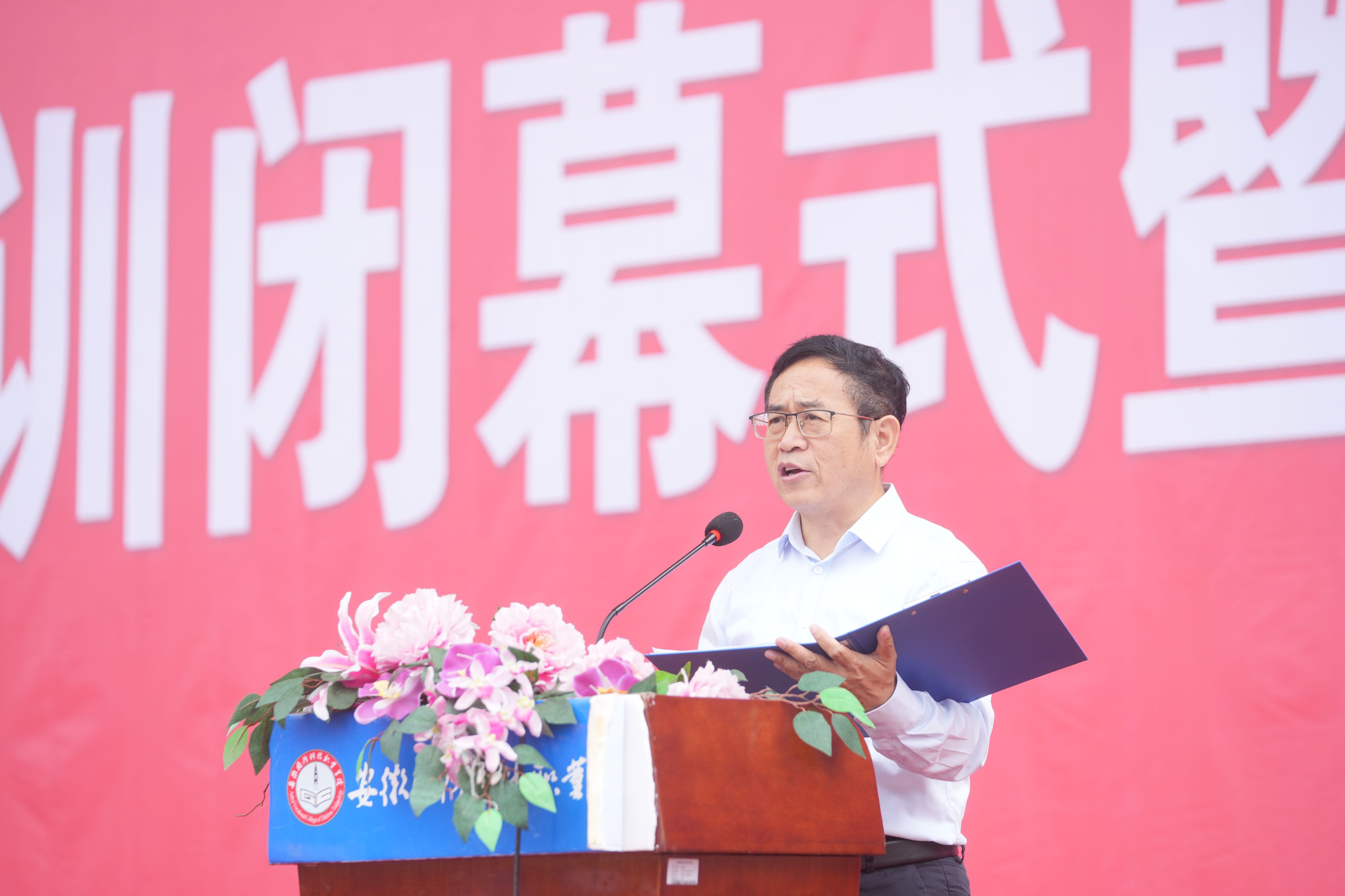 本网讯 秋高气爽,旌旗飘扬。经过为期三周的严格训练,我校2025级新生军训圆满落下帷幕。9月27日上午,军训闭幕式暨总结表彰大会在学校运动场隆重举行。校党委委员、副校长付贤政、学工部(人武部)部长孙武、学生处副处长张志鸿、各二级学院党总支书记及全体参训学生参加活动。闭幕式由学生处副处长张志鸿主持。