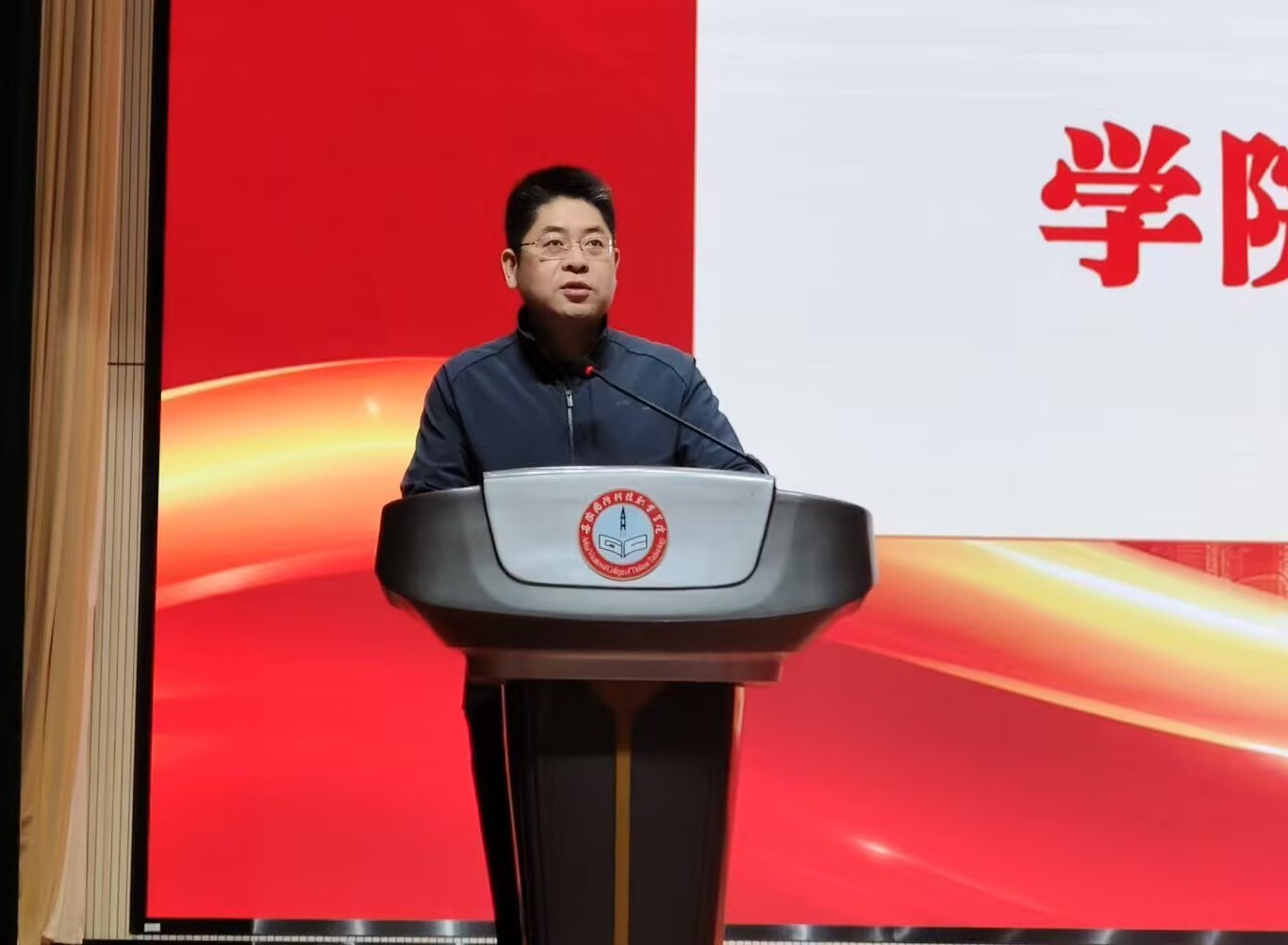 第一阶段典礼在庄严的国歌声中开始。院长杨力在致辞中代表学院向跨越山海而来的新生们致以最诚挚的欢迎,寄语大家珍惜大学这一“人生塑形期”,既要深耕专业知识沃土,更要锤炼综合素质本领。他强调“德智体美劳全面发展”的育人目标,号召新生们将个人理想融入民族复兴的壮阔征程,以青春之力托举中国梦。他以“三点希望”为新生锚定成长方向:以信念为舵,做志存高远的追梦者;以学习为帆,做勇担重任的实干家;以奋斗为桨,做踔厉前行的开拓者。